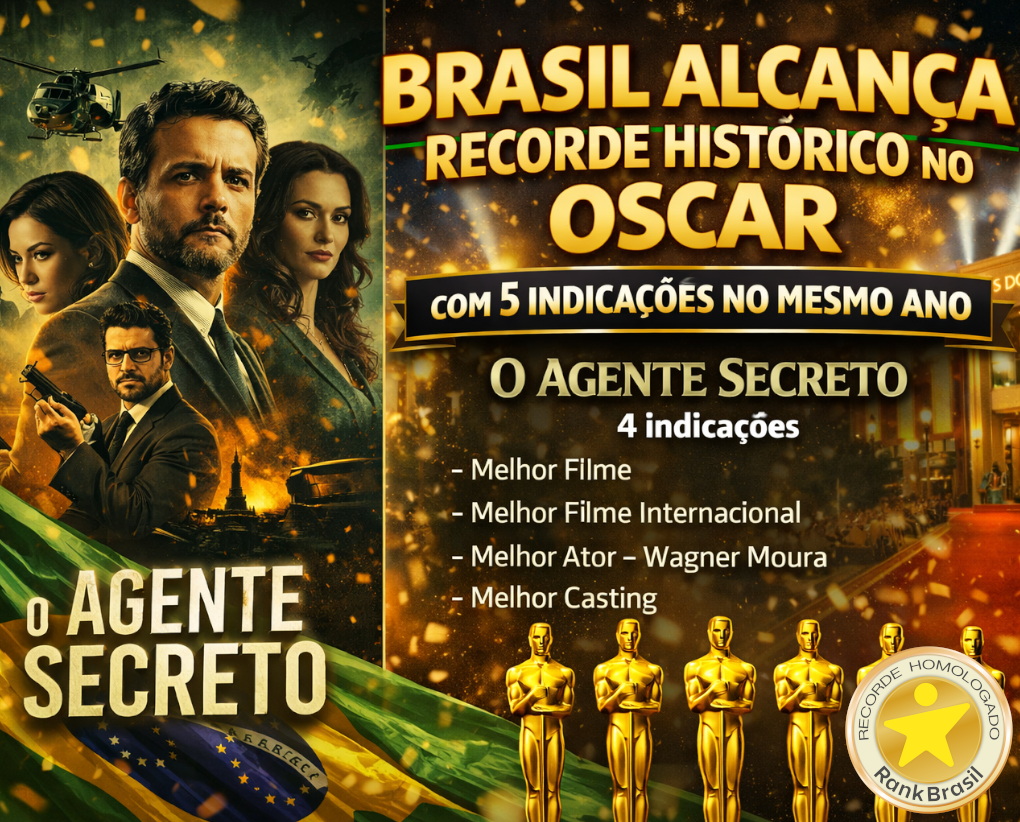 5 indicações no mesmo ano. Feito histórico: o Brasil alcança cinco indicações ao Oscar 2026, a maior marca nacional em um único ano.