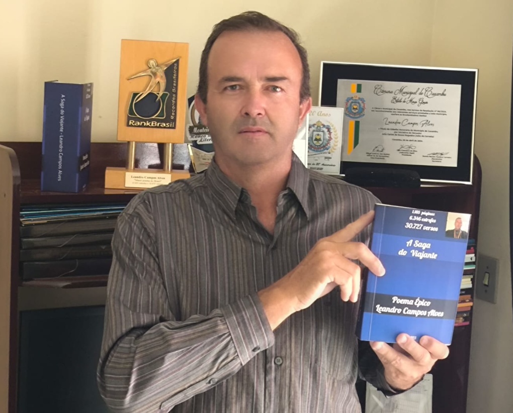 Com 6.346 estrofes, 30.727 versos e 1.185 páginas, Leandro Campos Alves supera o próprio recorde e conquista o título de Maior Poema do Brasil.
